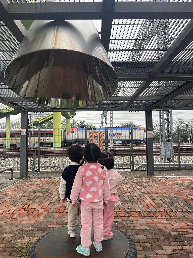 기차 구경 명소인 고모역 파빌리온에서는 열 개에 달하는 많은 기찻길 위로 달리는 다양한 기차들을 보며 크게 신났습니다.